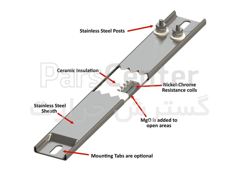 این نوع المنت برای سطوح صافی که می خواهیم شار حرارتی یکنواخت توزیع گردد مورد استفاده قرار می گیرد.این نوع المنت بیشتر در صنایع کاشی و سرامیک کاربرد فراوانی دارد